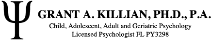 Grant A. Killian, Ph.D. is a Florida licensed psychologist (PY 3298) licensed since 1983. He received his Ph.D. and M.A. from the University of Chicago where he was the recipient of the National Research Service Award and the Noyes Foundation Award. He received his Clinical Internship at the Illinois State Psychiatric Institute in Chicago and his post-doctorial residency at St. Elizabeth's Hospital in Washington, DC. He received his B.A. from New College in Sarasota, Florida, and graduated from Prep School from Tabor Academy in Marion, Massachusetts with several awards.